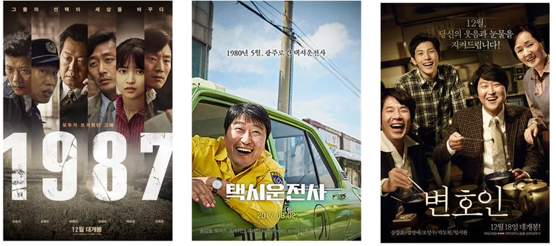 Posters from the three films used as examples in this study. Each is based on real South Korean political events. If you haven’t seen them, I highly recommend them! (not sponsored)